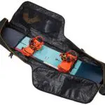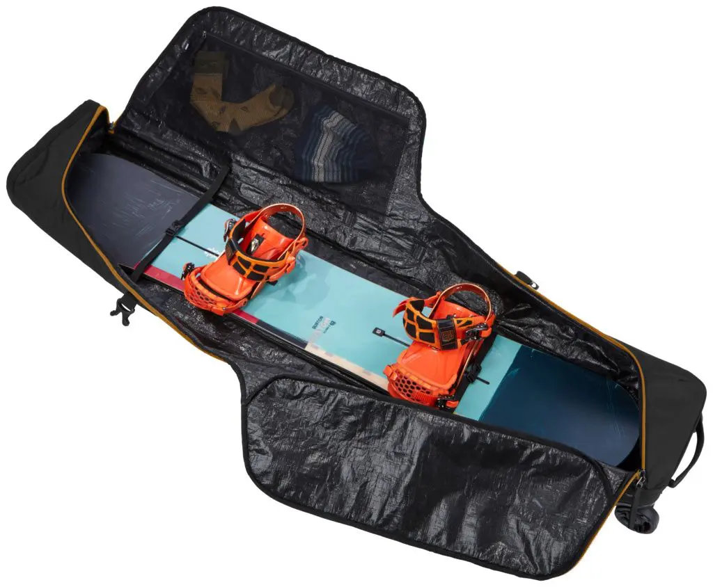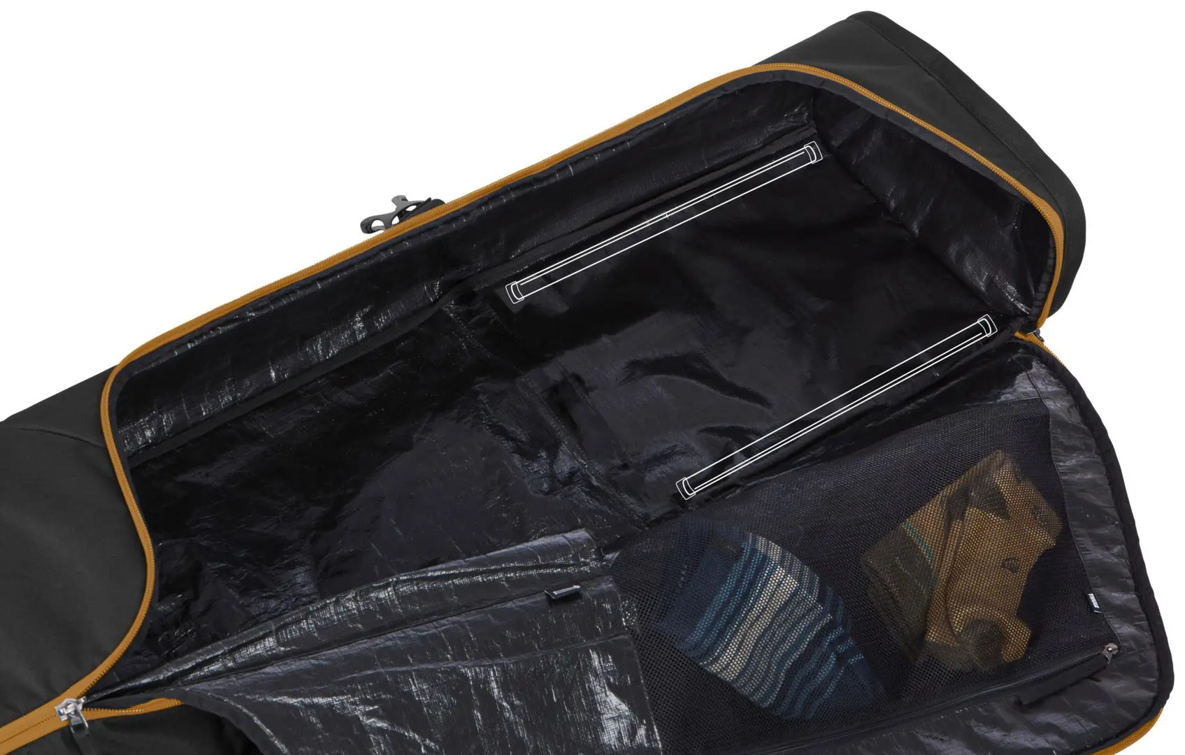 Een ruime snowboardtas op wielen met extra bescherming aan de uiteinden van de drager zodat uw uitrusting veilig meereist naar elke bestemming.